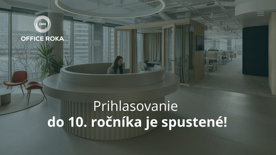 Súťaž CBRE Office roka, ktorá už od roku 2016 mapuje najinšpiratívnejšie kancelárske priestory na Slovensku, vstupuje do svojho jubilejného 10. ročníka. Podujatie oceňuje firmy, ktoré dokážu vytvárať kancelárie podporujúce produktivitu, kreativitu, spoluprácu aj duševnú pohodu zamestnancov.